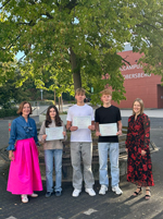 Für die Teilnehmer an den diesjährigen DELF-Prüfungen hieß es viel Französisch üben bis zum Prüfungstag und danach Abwarten und Daumendrücken. Nach einigen Monaten war es nun so weit: Drei Schülerinnen und Schüler der Gesamtschule Obersberg erhielten ihre DELF-Diplome für die Niveaustufe A1 aus den Händen der Gymnasialzweigleiterin Cornelia Handke und der Französischlehrerin Kathrin Hanstein.