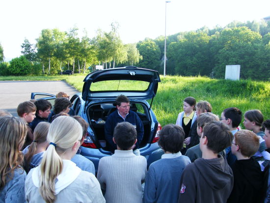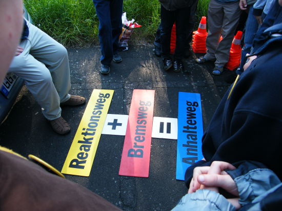 Außerdem konnten die Schülerinnen und Schüler durch praktische Übungen ihre Fähigkeit testen, Geschwindigkeiten und Bremswege im Straßenverkehr richtig einzuschätzen. Herrn Wartmann, dem Leiter dieser Veranstaltung, gelang es, selbst komplizierte Zusammenhänge anschaulich, interessant und altersgerecht zu vermitteln. Krönender Abschluss stellte eine Vollbremsung aus 30 km/h dar, die jeder Teilnehmer mitmachen und so die Notwendigkeit des Anschnallens im wahrsten Sinne des Wortes erfahren konnte.