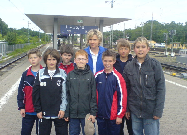 Das Foto zeigt die Mannschaft, zufrieden mit ihrem Erfolg, kurz vor der Heimfahrt an der S-Bahnhaltestelle Frankfurt-Stadion. Von links: Paul Wagner, Johann Eirich, Tobias Kim-mel, Philipp Hildebrand, Betreuerin Dagmar Wagner, Lucas Führer, Jan Nöding, Andreas Schäfer.Mit Beginn des Schuljahres startete die neue Talentfördergruppe unter der Leitung von Dr. Thomas Jäger ihre Trainingsarbeit auf dem Obersberg. Zurzeit trainieren 15 Fußballer der Jahrgänge 1997 und 1998 zweimal wöchentlich im Stadion bzw. in einer Halle der GSO. Inzwischen wurde die Talentfördergruppe Fußball auch mit einheitlichen Trikots ausgerüstet. Finanzielle Unterstützung erhielt die TFG dabei vom Hessischen Fußballverband und von der Hessischen Sportjugend. Der Rest wurde von den Eltern der Kinder finanziert. Hierfür nochmals vielen Dank.