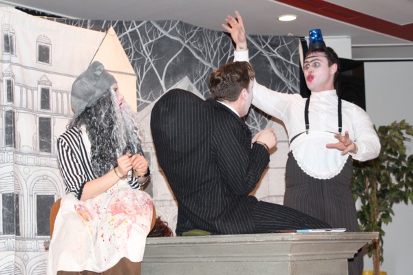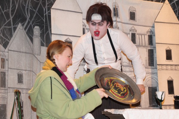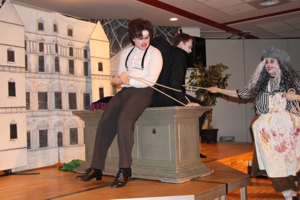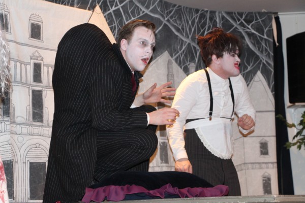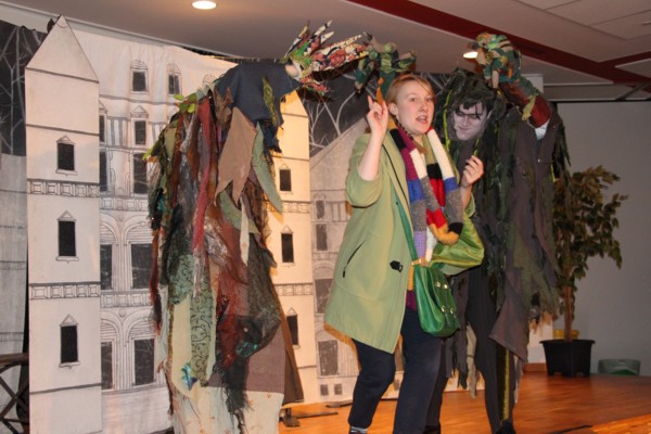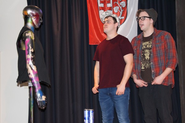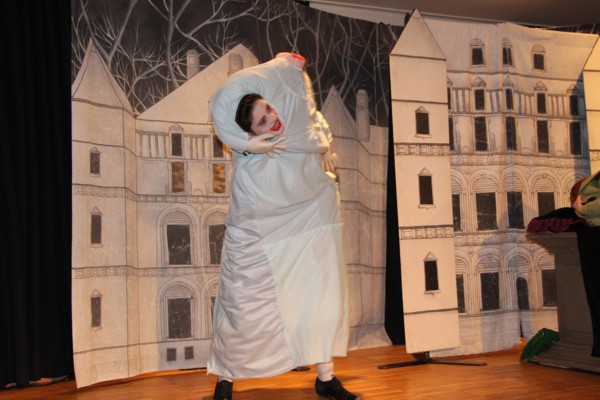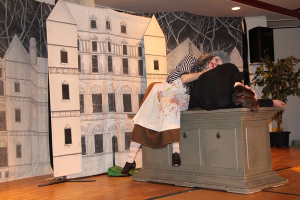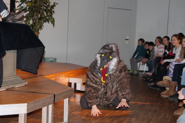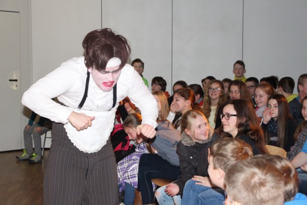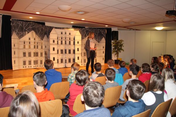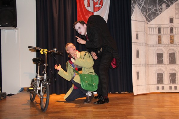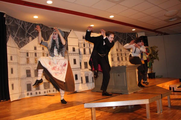 Für die Fünft- und Sechstklässler bot das vierköpfige, junge Schauspielteam einen Gruselkrimi "Fear in the Forest". Josie hat auf dem Weg zu ihrer Großmutter eine Reifenpanne im tiefen Wald und muss in einem unheimlichen Hotel übernachten. Nicht nur das Essen ist dort zum Weglaufen.