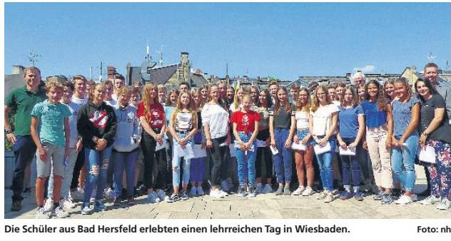 Einen Ausflug ins Herz der Landespolitik, den Hessischen Landtag, machte in der vergangenen Plenarwoche eine Schülergruppe der neunten Jahrgangsstufe der Gesamtschule Obersberg in Bad Hersfeld gemeinsam mit ihren Lehrkräften Arne Stückradt (stellvertretender Schulleiter) und Dr. Daniel Faßhauer.