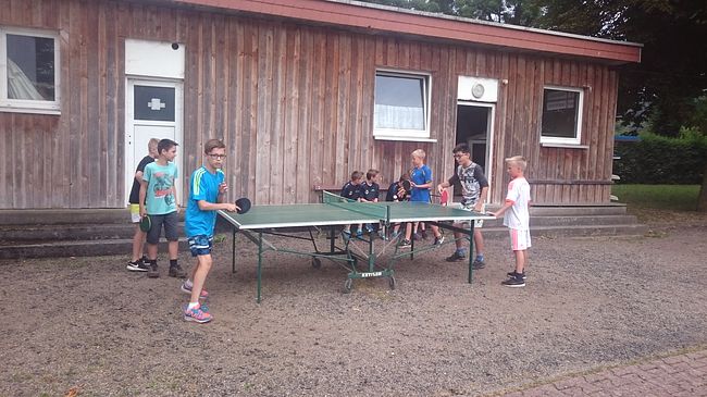 Da nicht alle Schülerinnen und Schüler gleichzeitig aufs Wasser konnten, fanden die Sportklassenschüler eine Beschäftigung im Tischtennis. Die bereits im Unterricht erlernten Fertigkeiten konnten spielend umgesetzt werden und sorgten auch für ausreichend Spaß auf dem Land.